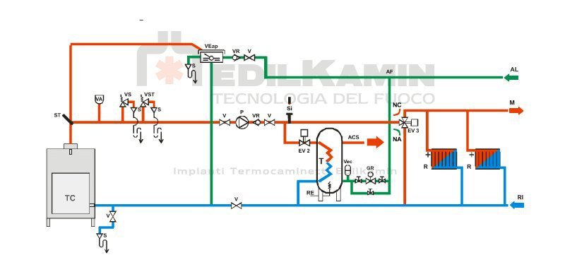 Muestra de diferentes tipos de instalaciones para calderas, termochimeneas o termoestufas.